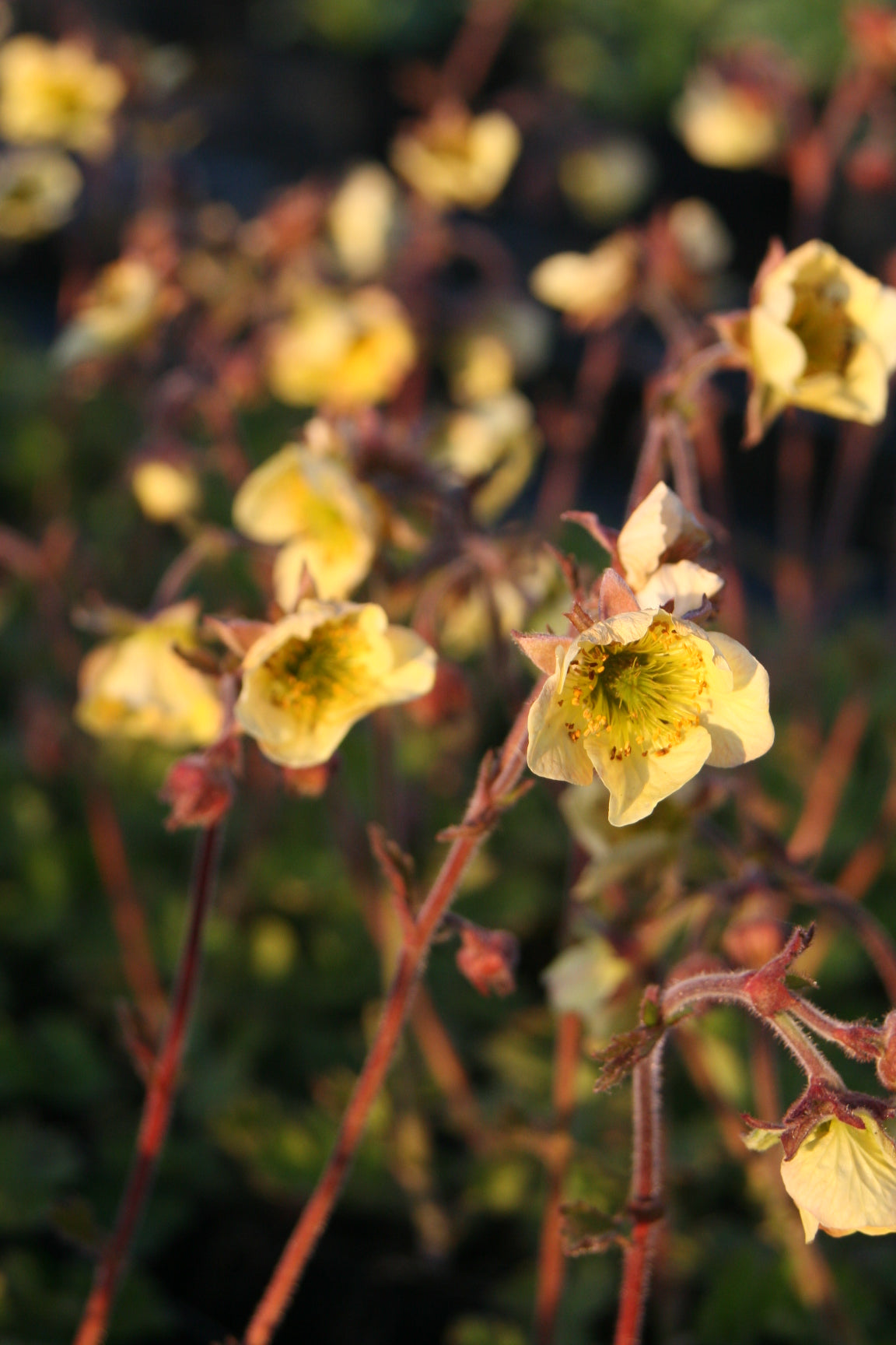 Eine hübsche Sorte des Bachnelkenwurz. Sehr apart sind diese großen, cremegelben, nickenden Blüten. Durch die rotbraunen Kelchblätter und Stiele sowie die dunklen Staubgefäße wirken sie aprikosenfarbig. Die Sorte ist für kleinste Anlagen geeignet und hat eine lange Blütezeit.